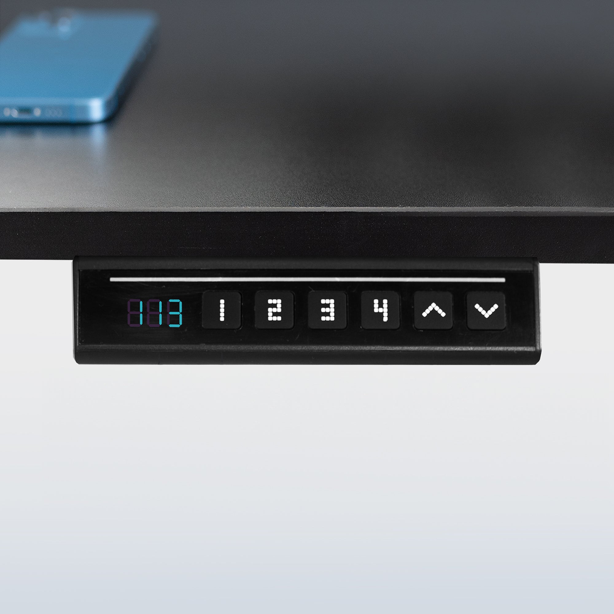 The easy-to-use push-button controller features 3 memory presets to save your desired sitting and standing heights.