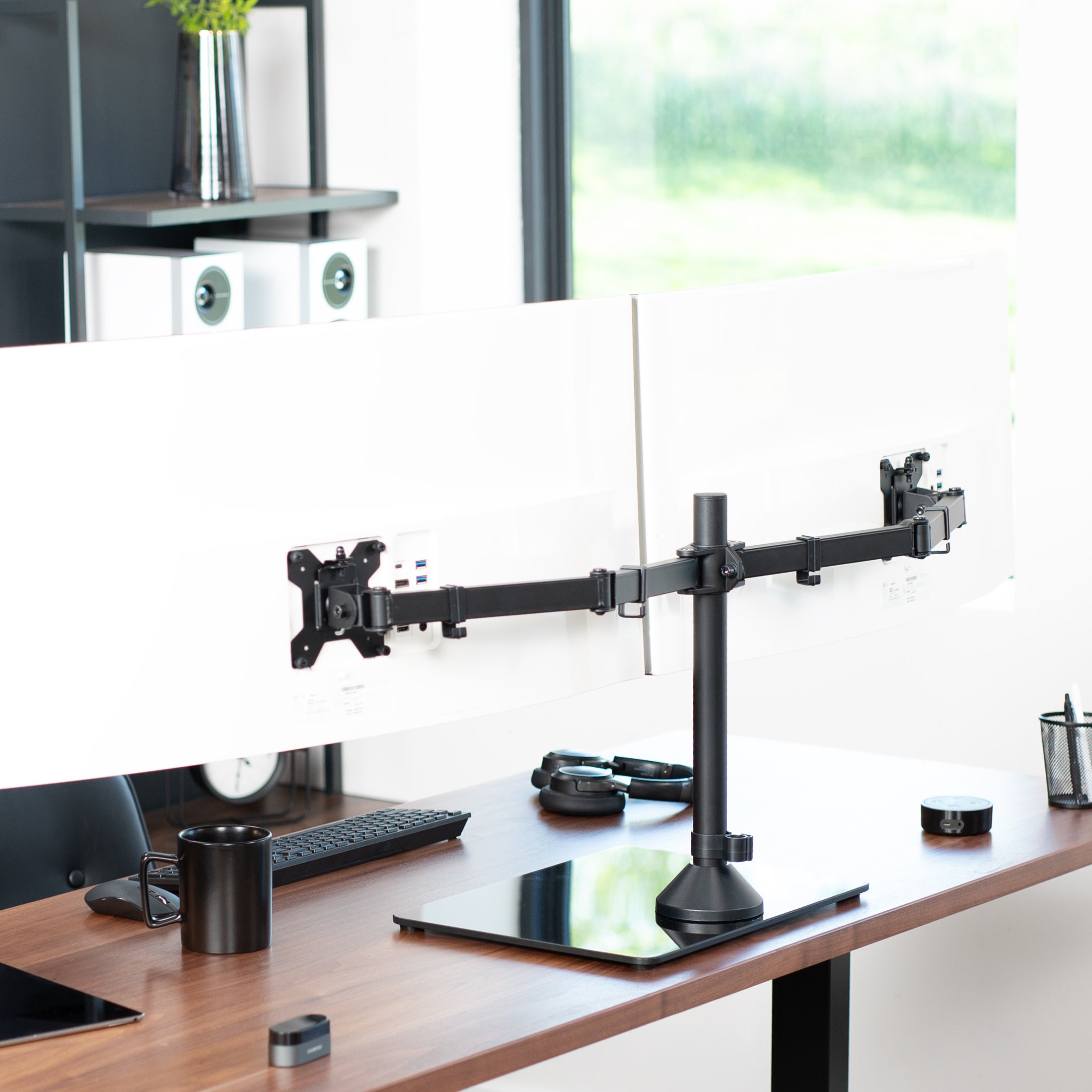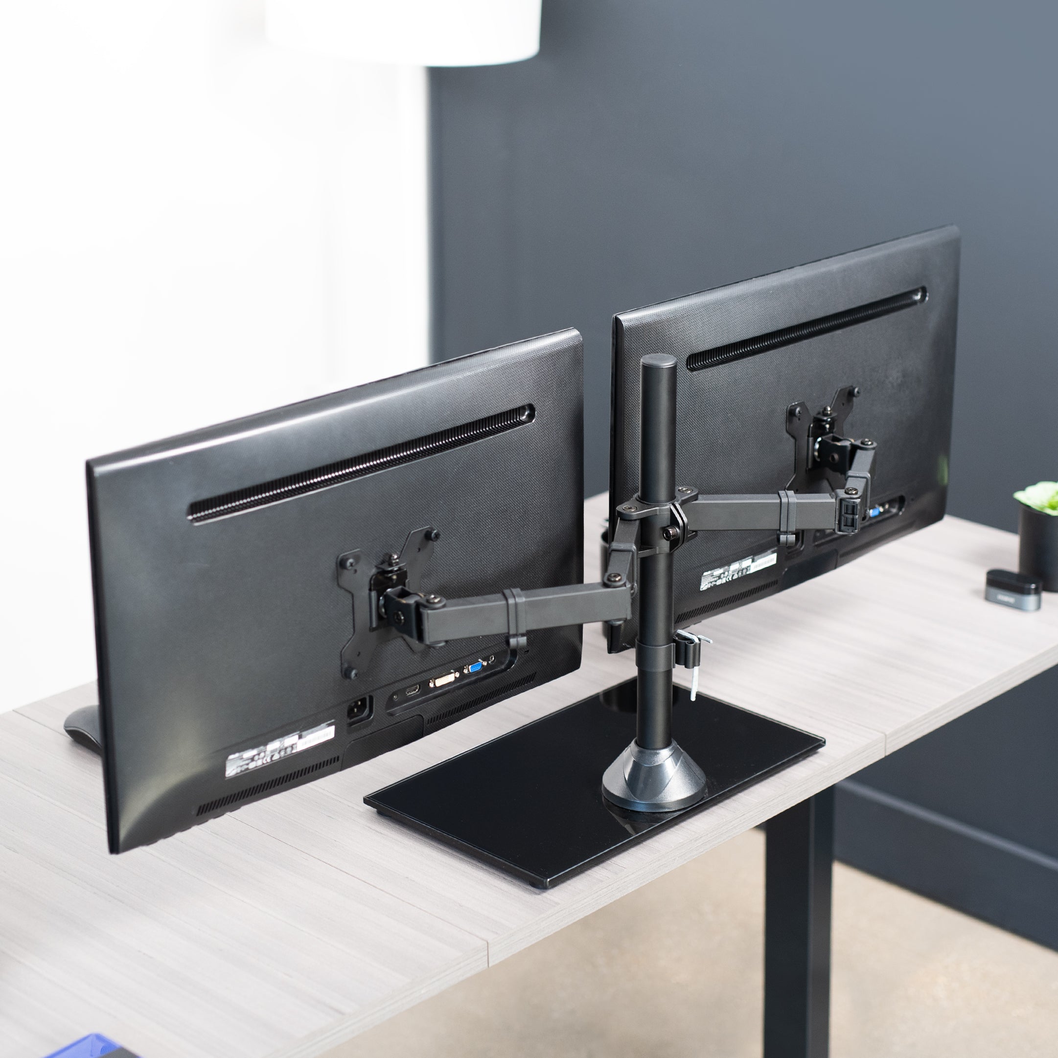Dual Monitor Desk Stand with Glass Base - Up to 38" Screens